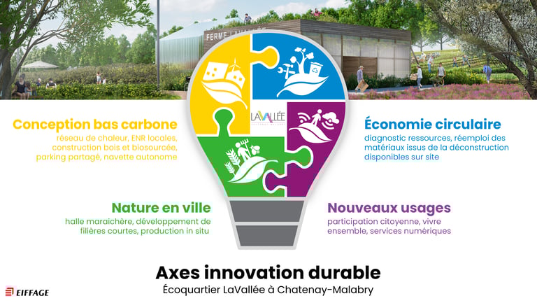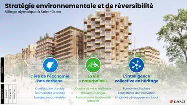 Cadrage de la stratégie d’innovation durable à l’échelle d’un projet immobilier majeur : structuration en quatre leviers lisibles et comparables pour aligner les acteurs, piloter et prioriser efficacement les actions.