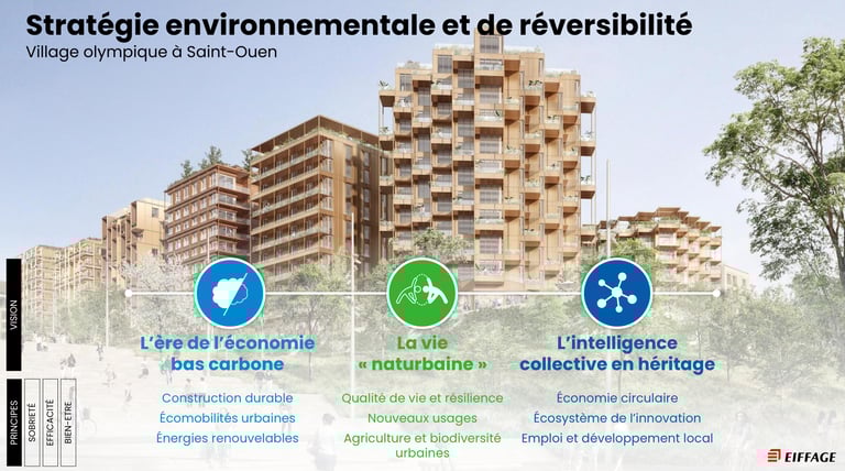 Cadrage de la stratégie d’innovation durable à l’échelle d’un projet immobilier majeur : structuration en quatre leviers lisibles et comparables pour aligner les acteurs, piloter et prioriser efficacement les actions.